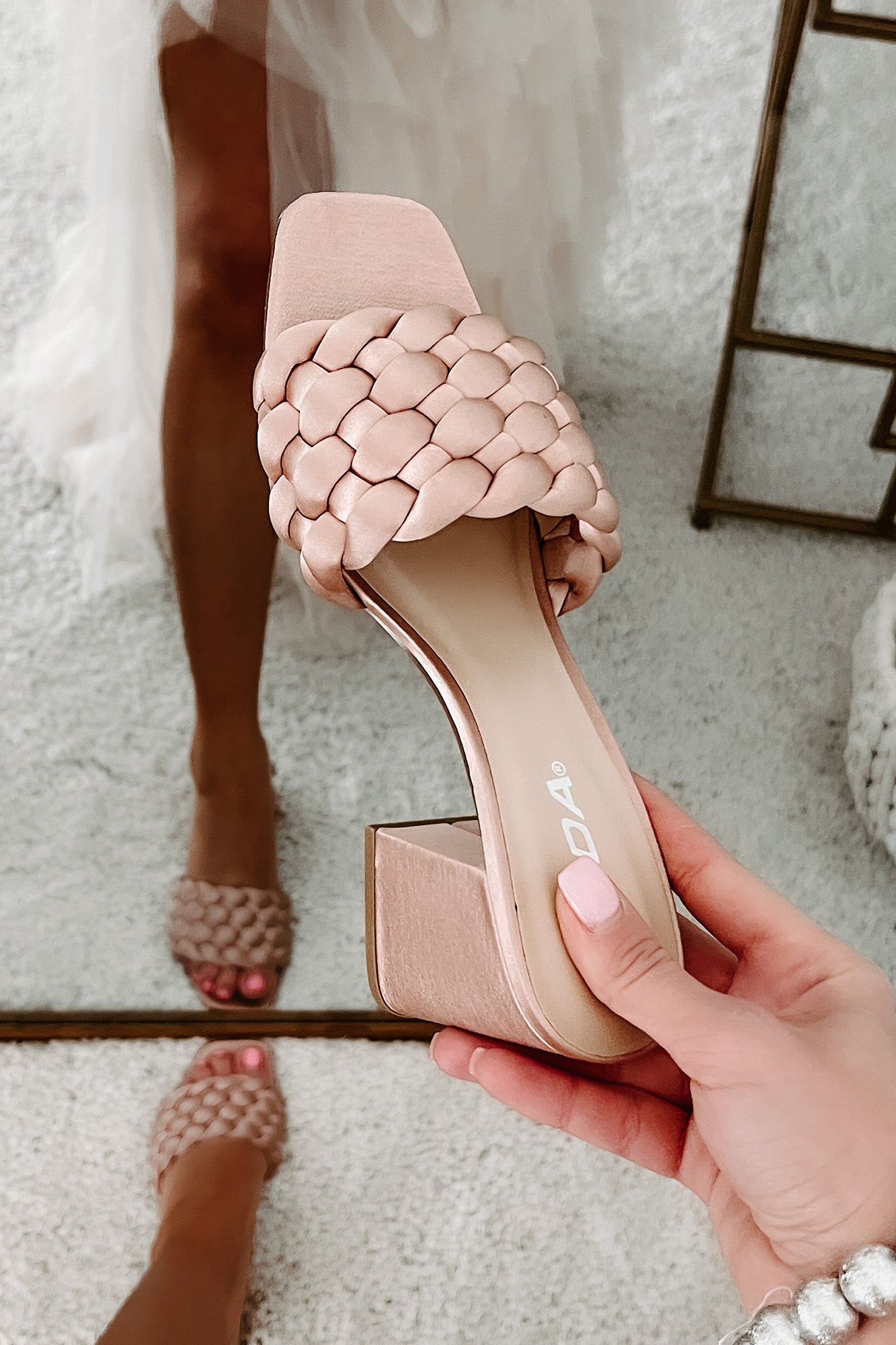 Step out in style with these light mauve satin block-heeled sandals! Woven foot straps and an open toe create a comfortable fit, while the 3" block heel gives you that slight lift. Whether it's day or night, your feet will be sure to look chic!